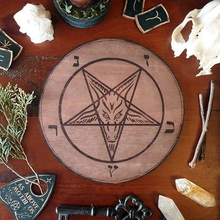 Sigil of Baphomet Altar Tile: 20cm Wide Jarrah Wood