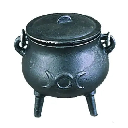 Cast Iron Cauldron w/ Lid - Mini Triple Moon (3.5 in.)