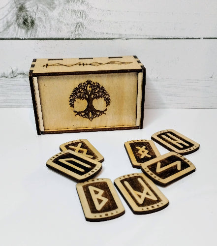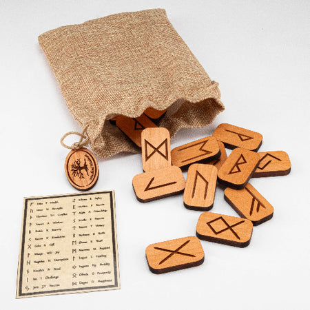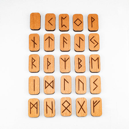 Elder Futhark Rune Set, Solid Engraved Elder Wood