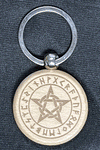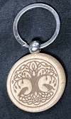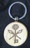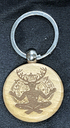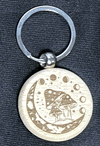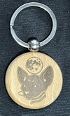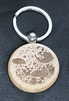 Laser engraved Key Chains, Custom made in Asheville NC. Wood size is @ 1.5 inches in diameter.
