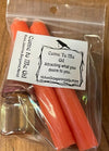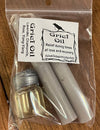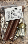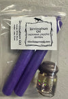 Oil sampler. Comes with small oil and two chime candles. Some have one store-made tealight candle in place of the chime candles.