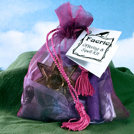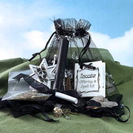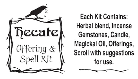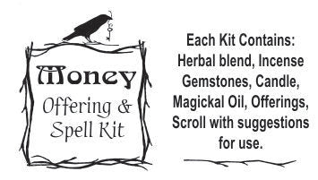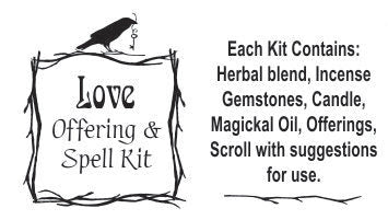 Each Spell Kit contains: 3 stones in an organza bag, Herbal offering blend, Oil sample for the spell, Charms, Incense cone, Chime candle & Holder, Parchment paper for writing spell, Instructional Scroll.