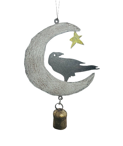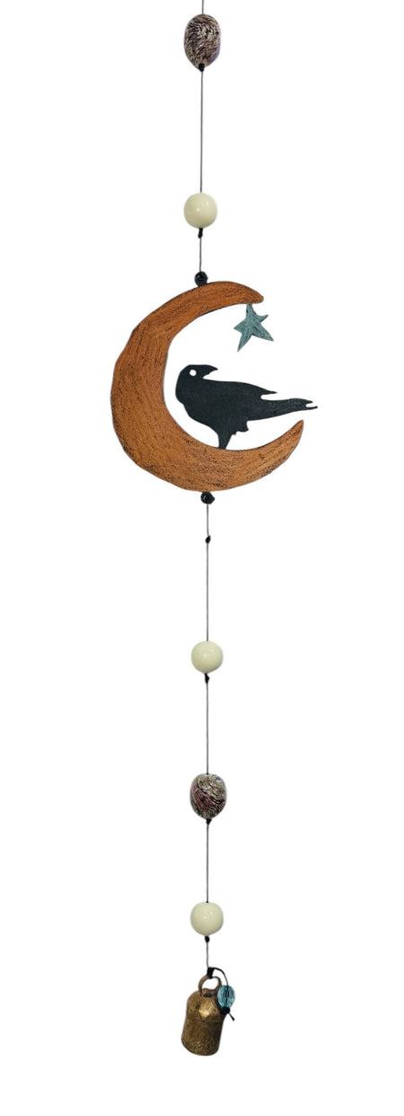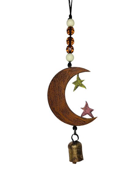 Triple Moon Pentagram Wind Chime Brass with Beads