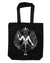 These tote bags measure 15 inches wide by 16 inches tall, and are 3 inches deep. They are 25 inches tall overall with the handles. The 100% cotton sheeting makes them durable and last for years of usage.